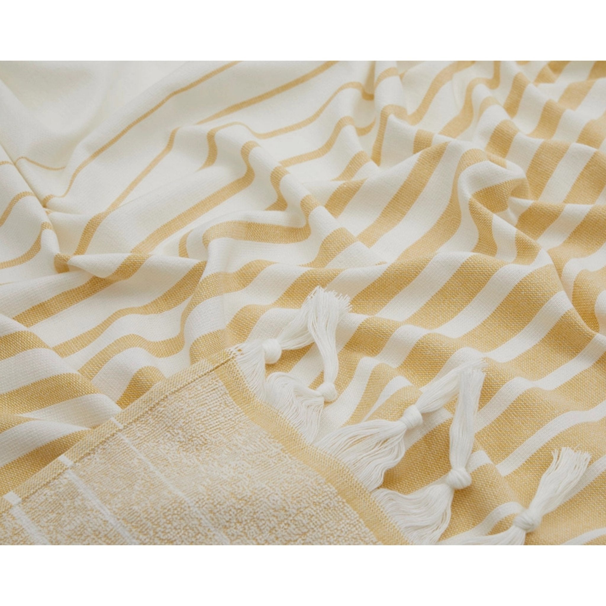 Det randiga mönstret tonar mjukt ut mot handdukens mitt och skapar ett lugnt, harmoniskt uttryck. Den är högabsorberande och snabbtorkande vilket gör att handduken passar idealisk som resahandduk, strandhandduk eller bastuhandduk. Den passar även utmärkt att användas i hemmet.