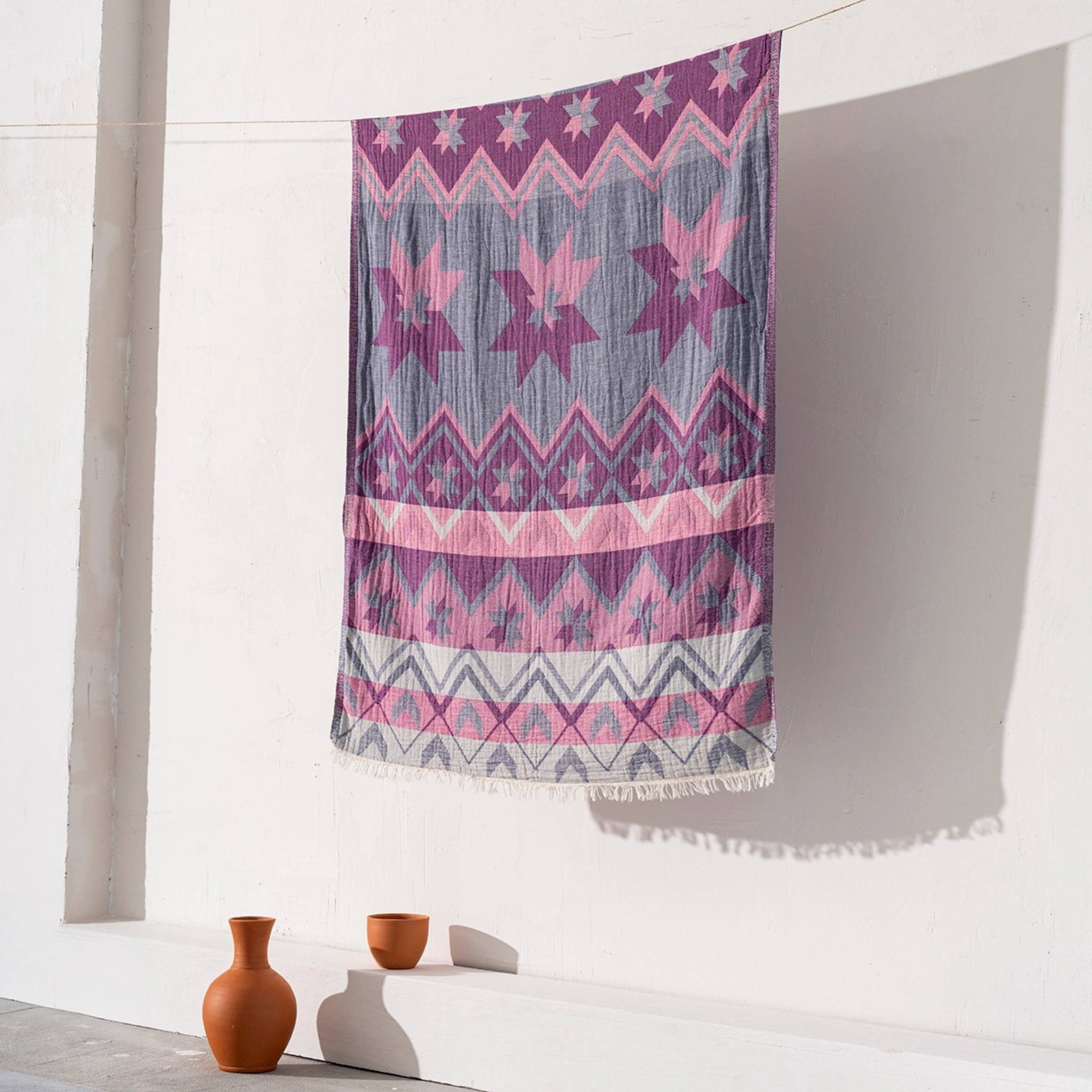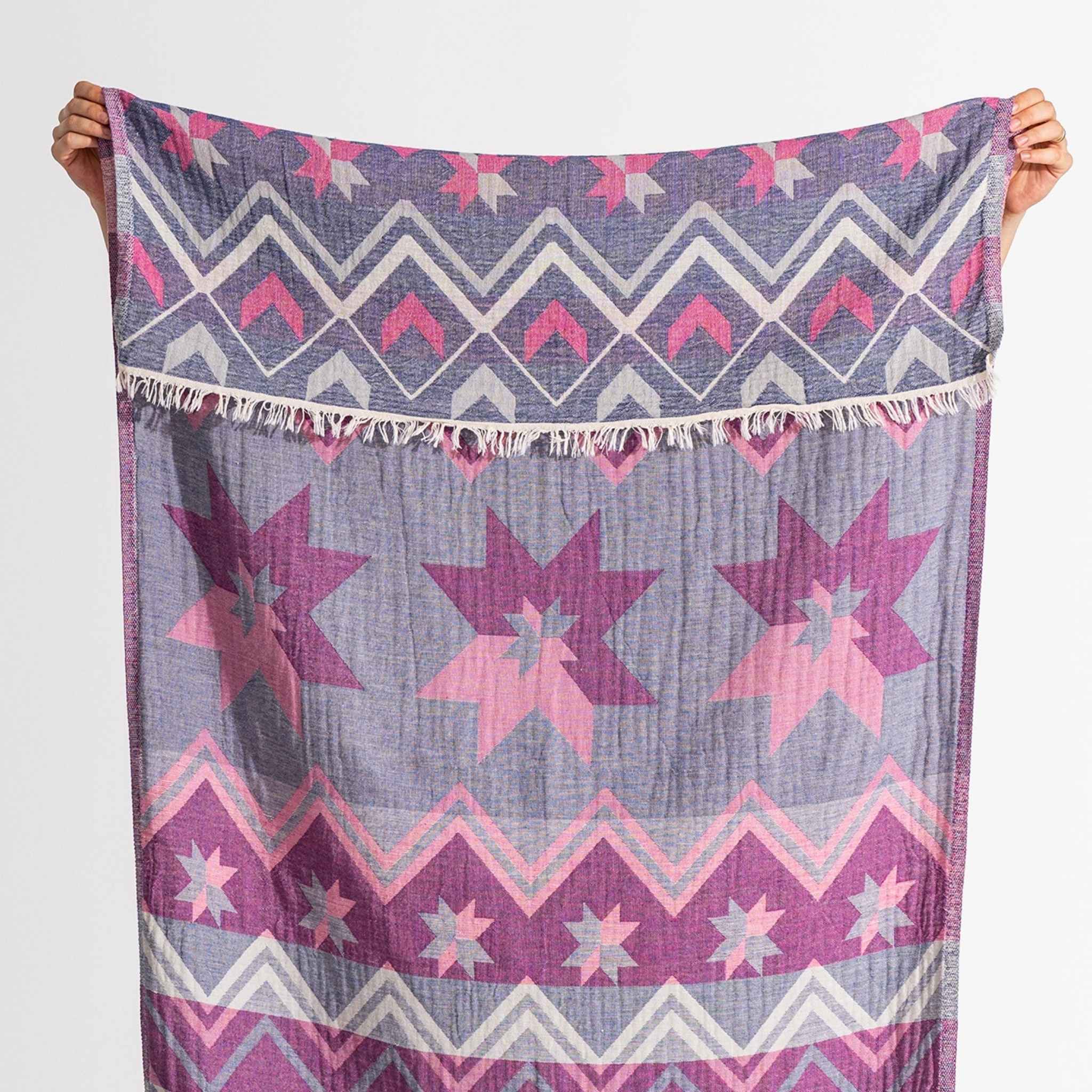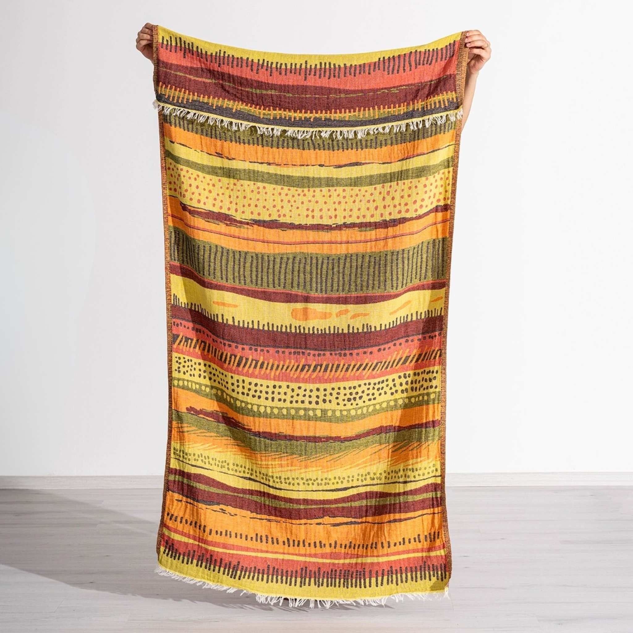 - Mångsidiga – Kan användas som strandhandduk, sjal, filt eller till och med som bordsduk.